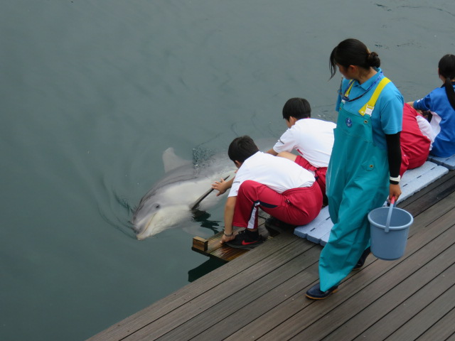 まずは天草青年の家の職員の方と入所式 シードーナツの入り口で何かに注目