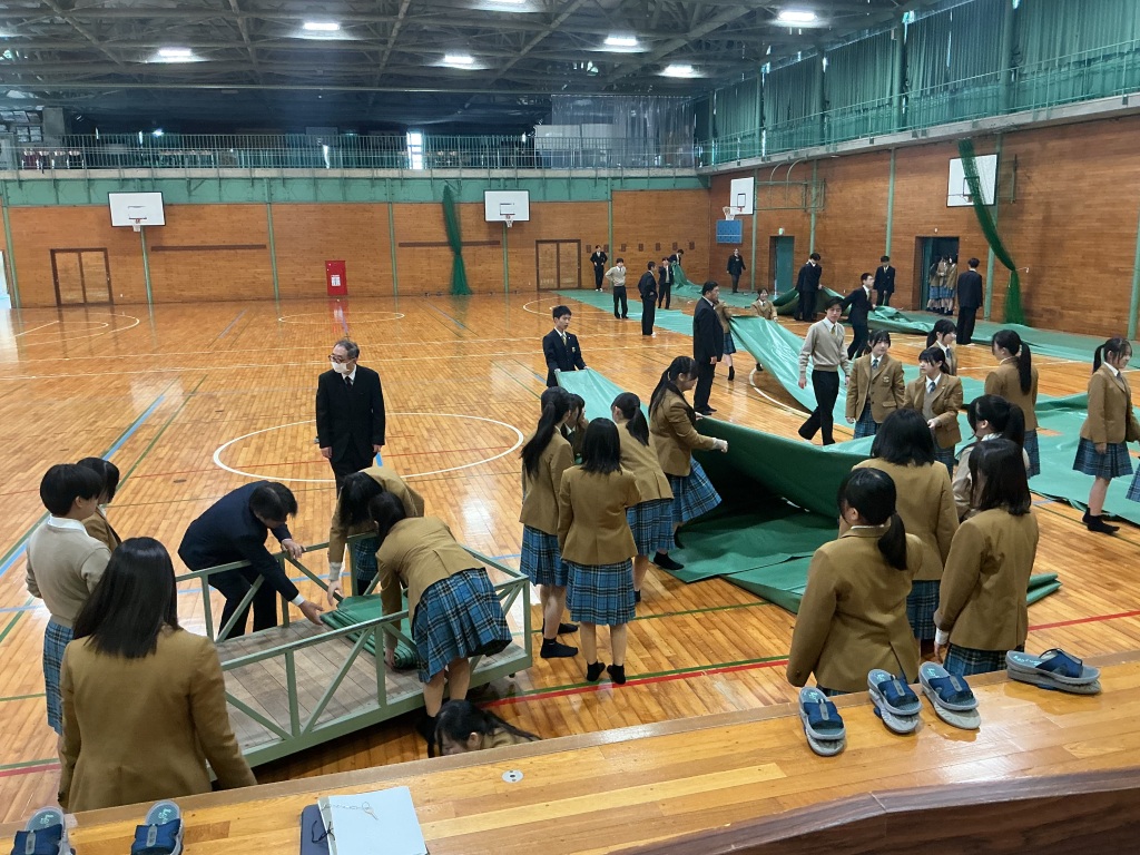 高校2年生の先輩が心を込めて式場準備にあたってくれました
