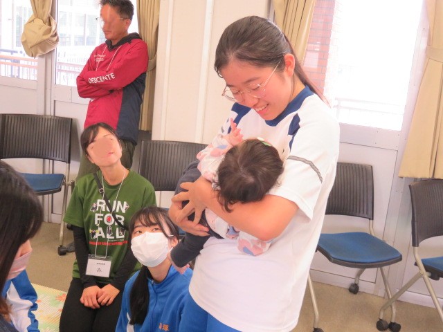 生徒は乳幼児、その保護者と接することで、「命の大切さ」や「子どもに対する保護者の思い」、「子育ての楽しさや大変さ」を感じ、親子にとっては、普段、関わりの薄い中高生との交流を通し、長期的な子育てのイメージを持って、子どもと関わることの大切さを知る新たな機会となってくれれば・・・
