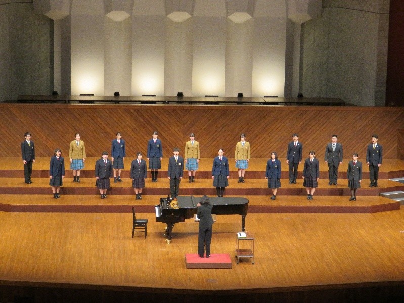 本校合唱部は、慶誠高等学校合唱部、東稜高等学校合唱部、御船高等学校コーラス部の皆さんと合同で合唱部門に出場。指導にあたっていただいた先生方、練習会場をお借りした各学校様、ご支援いただいた保護者様、他すべての皆様にお礼を申し上げます