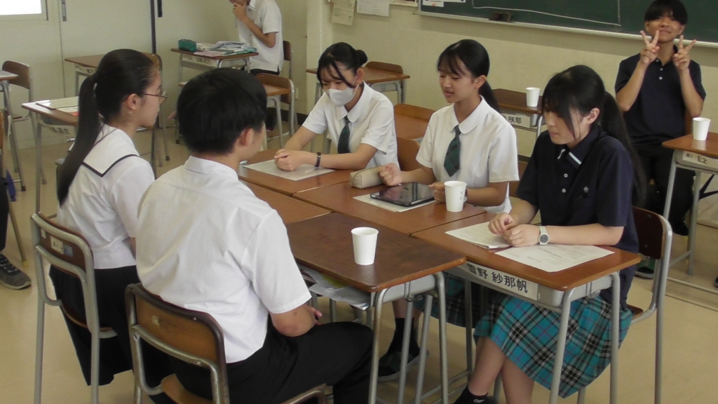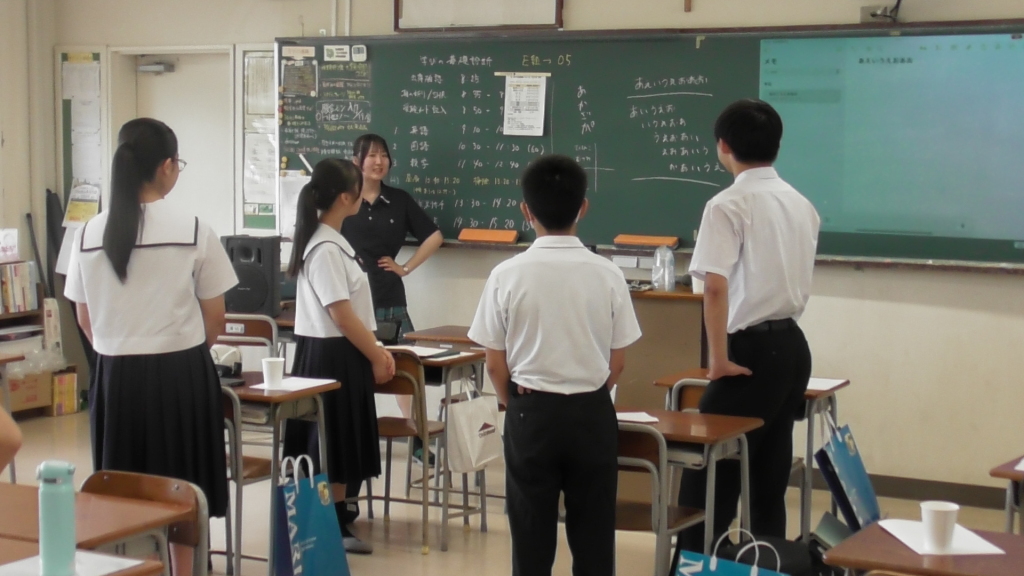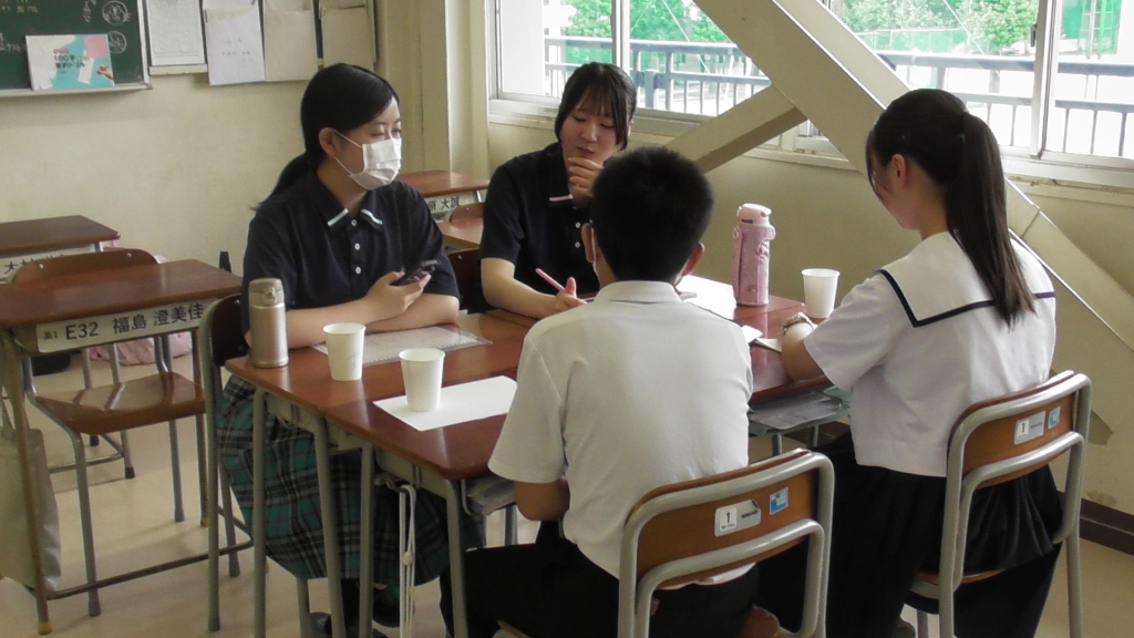 上記の時間帯で来校してくれた放送委員の4名の中学生と本校放送部の中学生・高校生が交流しました。その中で、NHKコンテストの全国大会で入賞した作品鑑賞や発声の練習の仕方などを通して、本校放送部の取り組みについて研修を行い、お互い刺激になったようです。